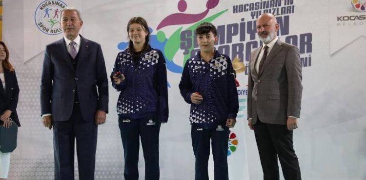Konuşmaların ardından Bakan Akar ve Başkan Çolakbayrakdar, sporcuları ve onları yetiştiren antrenörleri tebrik ederek, elde etmiş oldukları derecelere göre tam altınla ödüllendirdi.