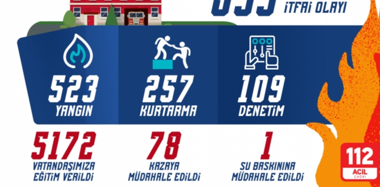 İtfaiye ekipleri itfai olaylara müdahale çalışmalarının yanı sıra 5 bin 172 vatandaşa eğitim verirken, 109 denetim gerçekleştirerek yangın güvenliği ve afet farkındalığı konularında da aktif rol oynadı.