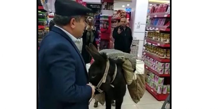 Niğde Valiliğince ‘Poşete para vermemek için markete eşekle geldi’ haberleri üzerine yapılan incelemede söz konusu kişinin market müdürü olduğu ortaya çıktı. Valilik, markete 4 bin 545 lira para cezası kesti.
