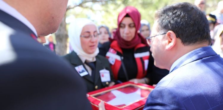 Yapılan saygı atışının ardından şehidimiz Osman Özsoy’un tabutunun üzerine örtülen, şehidimizin emaneti şanlı Türk Bayrağımız ve şehidimizin fotoğrafı, İçişleri Bakan Yardımcısı Mehmet Ersoy ve Vali Gökmen Çiçek tarafından şehidimizin eşine teslim edildi.