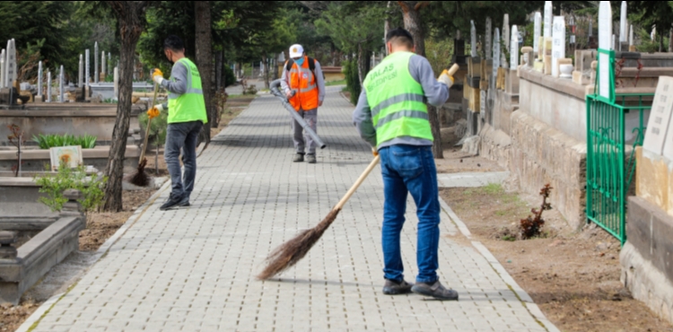 Talas Belediyesi, Ramazan Bayramı’nın ilçede rahat ve huzur içinde geçmesi için çalışmalarını tamamladı.Bayram öncesi çalışmalarını hızlandıran Talas Belediyesi, başta camiler ve mezarlıklar olmak üzere ilçe genelindeki genel temizlik ve çevre düzenlemesi yaparak ilçeyi bayrama hazır hale getirdi.