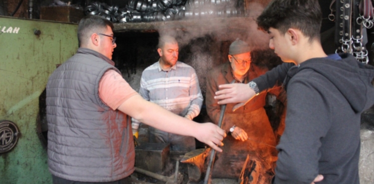 Çıraklık Okulu’nda eğitim gören Ahmet Hayri Paslıoğlu ise demircilikle küçük yaşlarda tanıştığını belirterek, “Demir sıçraması, ateş, sıcak demirle çalışmak zor ama severek yapıyorum. Babamın demiri ocaktan çıkarıp dövmesini izlerken bu mesleğe aşık oldum. Helal kazanç için çalışıyoruz. İnşallah bu mesleği gelecek nesillere taşıyacağız” ifadelerini kullandı.
