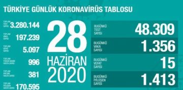 Sağlık Bakanı Fahrettin Koca, 'Türkiye Günlük Koronavirüs Tablosu'nu paylaştı. Bugün yapılan 50 bin 545 testten 1053'ü pozitif çıktı, yaşamını yitiren 19 kişi ile toplam can kaybı 5 bin 260 oldu. Toplam iyileşen kişi sayısı ise 185 bin 292'ye yükseldi.