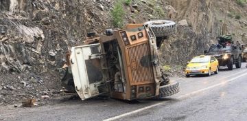 Hakkari'de, yağış nedeniyle kayganlaşan yolda kontrolden çıkan askeri aracın devrilmesi sonucu meydana gelen kazada, 3 asker yaralandı.
