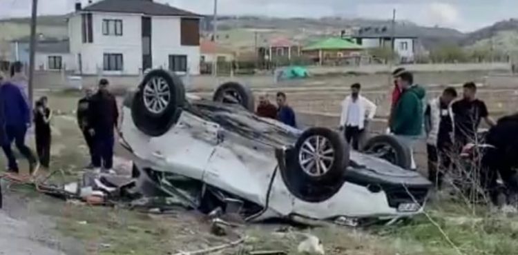 Çarpışmanın şiddetiyle bir araç takla attı.