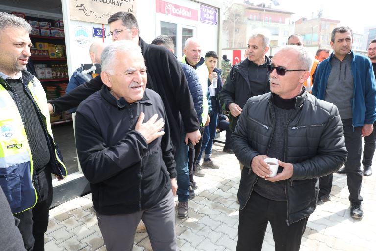 Başkan Büyükkılıç, deprem bölgesinde insanüstü bir gayretle Genel Sekreter Yardımcısı Hamdi Elcuman koordinesinde çalışan Kayseri Büyükşehir Belediyesi’nin fedakâr ekiplerine teşekkür ederken, dükkânlarına yerleşen esnaflar da “Allah razı olsun, bizleri çok mutlu ettiniz, çok duygulandırdınız, emeğinizi Allah zayi etmesin” diyerek Başkan Büyükkılıç’a hem teşekkür hem de dua ettiler.