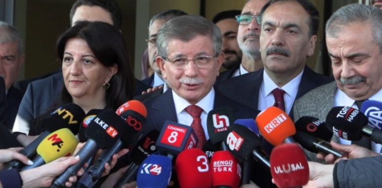 Davutoğlu ise Türkiye'nin iç yapısının tahkim edilmesinin Suriye ve Irak'ta da barışçıl çözümlere katkı sağlayacağını belirterek, "Değerli heyete teşekkür ediyorum. Kendileri son yaşanılan süreçle ilgili bizim için çok istifade ettiğimiz bilgiler aktardılar ve çok samimi, açık yürekli bir istişare oldu. Biz de kendi kanaatlerimizi geçmişte yaşadığımız tecrübelerden nasıl dersler çıkarılması gerektiğini ve dünyanın büyük bir türbülansa girdiği, büyük bir tsunami yaşandığı bölgede Suriye, Irak, Lübnan, Ürdün, Filistin ekseninde yaşanan hızlı değişime intibak bağlamında da Türkiye'nin kendi iç bünyesini tahkim etmenin büyük önem taşıdığını vurguladık. İç bünyeyi tahkim etmek, güçlendirmek ancak ve ancak gerçek bir demokrasinin inşasıyla olabilir. Bu da Türklerin, Kürtlerin bütün vatandaşların Türkiye'de hukukunun korunduğu ve geleceğe umutla baktıkları bir perspektifle olur. Çok önemli bir sürecin içinden geçiliyor. Benim buradan tavsiyem gerek heyet üyelerine gerek Türkiye'deki bütün siyasilere; Sayın Bahçeli'nin açıklamalarıyla başlayan ve daha sonra da toplum katmanlarına yayılan bu dönemi soğukkanlı bir şekilde, provokasyonlara kapalı olarak, kamu düzenine saygı göstererek ve derin tarih bilgimizden, bilincimizden, tecrübelerimizden hareketle geleceğin barış içinde yaşayan güçlü Türkiye'sini inşa etmektir bu mesele. Suriye ve Irak bağlamındaki girişimleri de gözden geçirdik. O konuda da kanaatlerimizi paylaştık. Türkiye'nin kendi iç yapısını tahkim etmesi eminim Suriye ve Irak'ta da barışçıl çözümler için büyük katkı sağlayacaktır. İnşallah hayırlısıyla bu süreç doğru bir istikamette ilerler" diye konuştu.