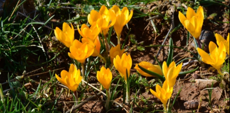 Kayseri’nin Yahyalı ilçesinde kış mevsiminin son günlerinde baharın müjdecisi olarak bilinen sarı çiğdemler çiçek açtı.