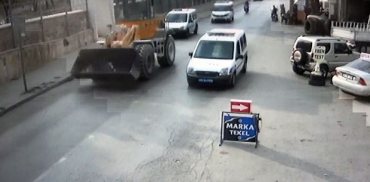 Denizli’de çalıştığı inşaat firmasından maaşını alamadığını iddia eden şahıs, fabrika önündeki iş makinesini kaçırdı. Şahıs kendisini durdurmak için kepçenin üzerine çıkan polis memurunu da kilometrelerce yanında götürdü. Şahsı, 5 polis ekibi ile yanındaki polis memuru, kimse zarar görmeden yaklaşık 4 kilometre sonra başarılı bir şekilde durdurabildi.